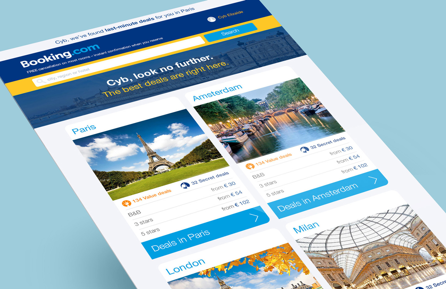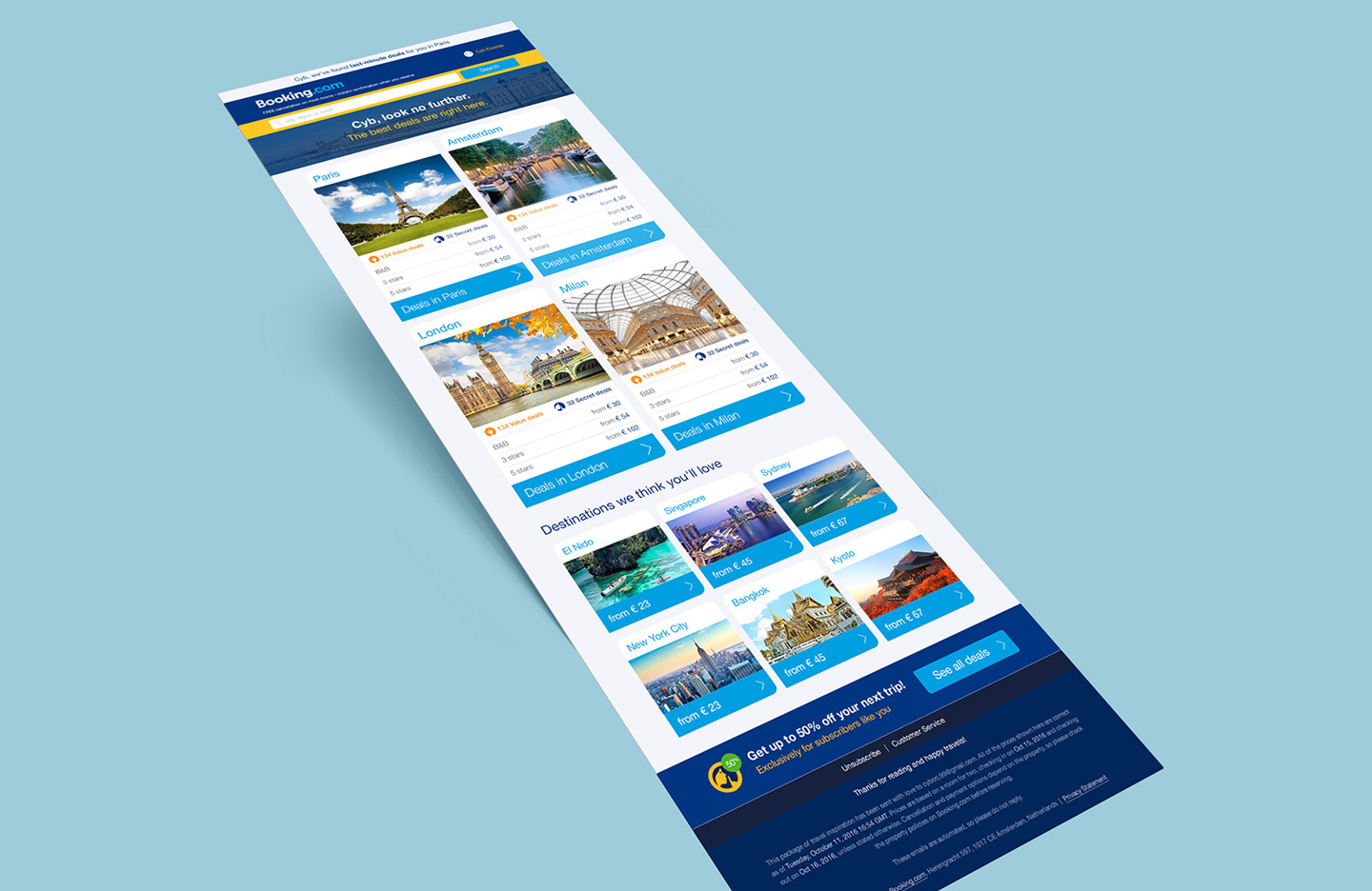 HTML email marketing design concept for Booking.com
