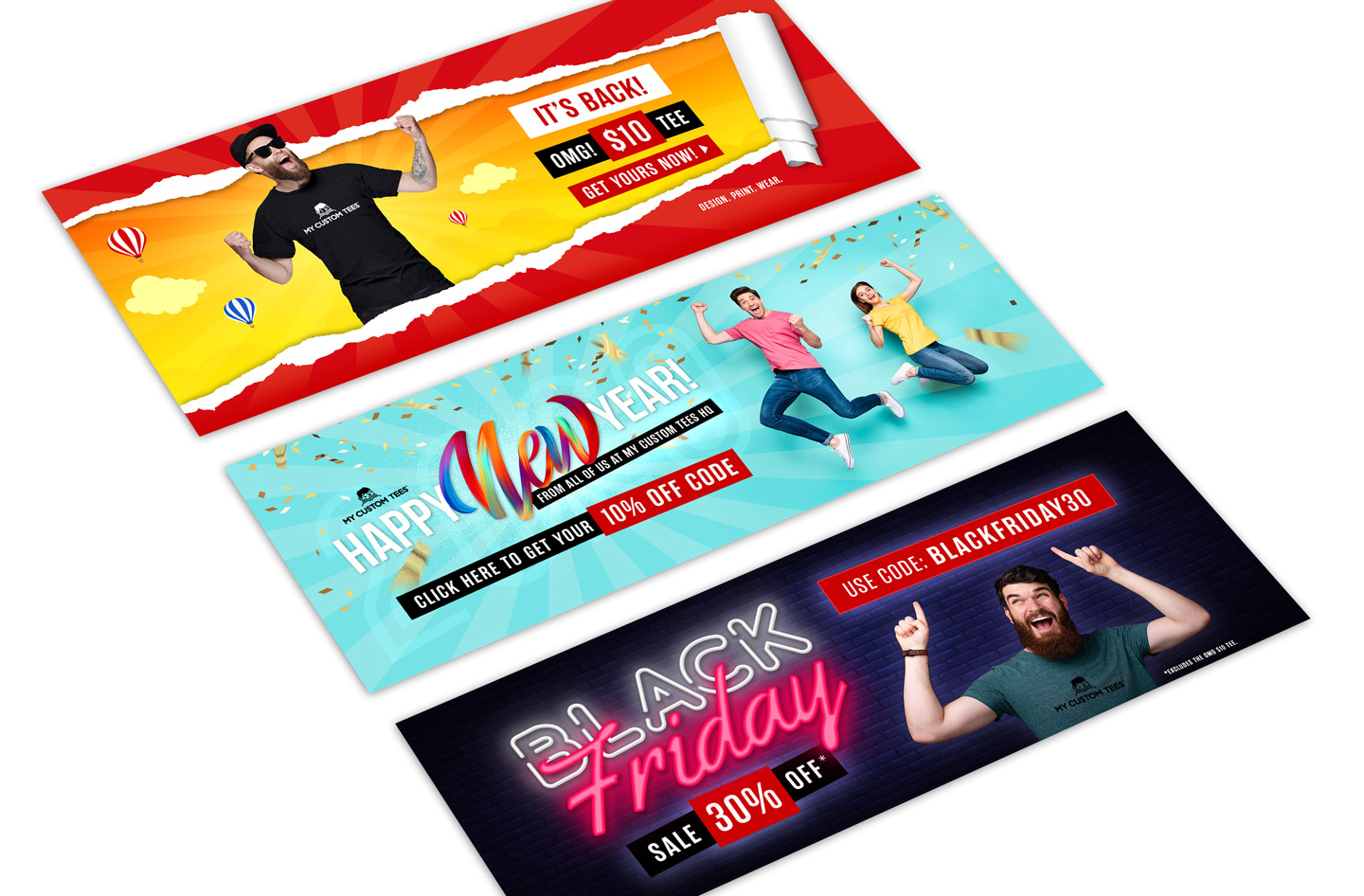 Website hero, banner and Facebook cover designs for My Custom Tees