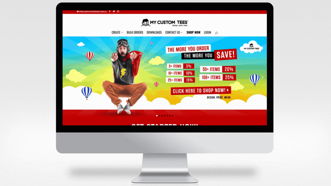 Responsive Web Design and Development for My Custom Tees. From conceptualization, design, and development on Wordpress. www.mycustomtees.com.au