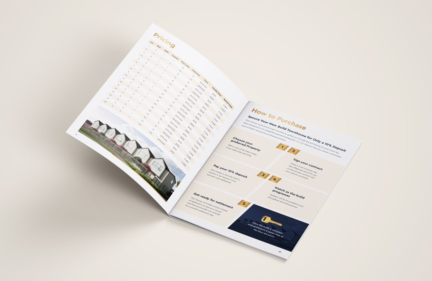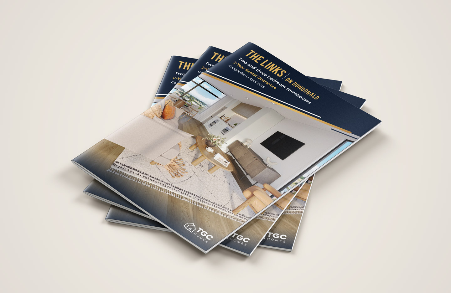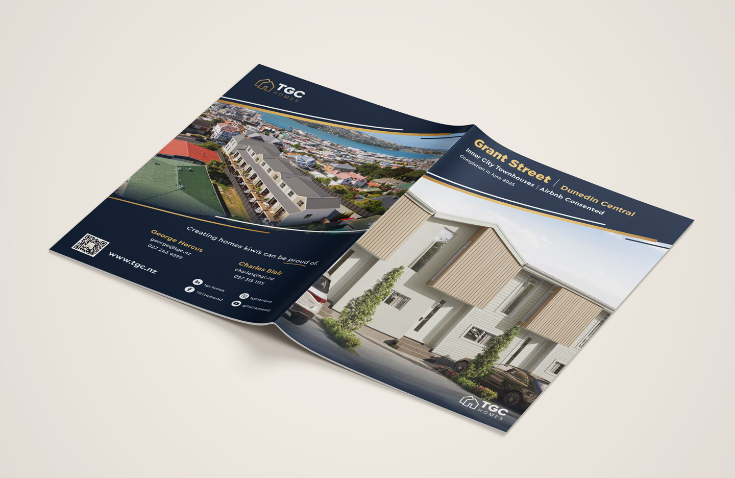 Brochure design for TGC Homes (New Zealand) using Adobe InDesign, Photoshop and Illustrator.